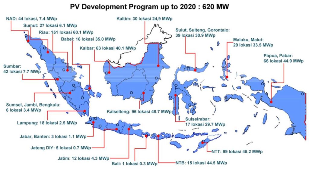 Kita patut berbangga karena sebenarnya PLN telah memulai proyek Solar Home System sejak tahun 2005 dan ditargetkan selesai pada tahun 2025 dengan total kapasitas terpasang 0,87 GW. Solar Home System atau SHS adalah pemanfaatan modul PV untuk menghasilkan listrik dari tenaga matahari dengan kapasitas yang tidak terlalu besar dan cukup untuk menerangi satu rumah sederhana. Program SHS ini dikhususkan bagi masyarakat berpendapat rendah dan di pelosok daerah dengan dengan memberikan PV berkapasitas 50Wp secara cuma-cuma. Dan dalam target waktu yang lebih dekat yaitu tahun 2020, PLN telah merencanakan pengembangan PV baik SHS maupun solar farm sampai dengan 620 MW tersebar di hampir semua propinsi, seperti pada gambar di bawah ini.