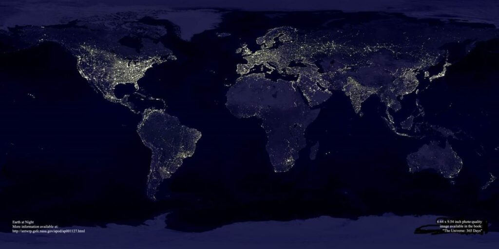 Foto di atas menunjukkan keadaan bumi saat malam hari. Anda bisa lihat negara kita dimana? Apakah daerah asal anda sudah terang?